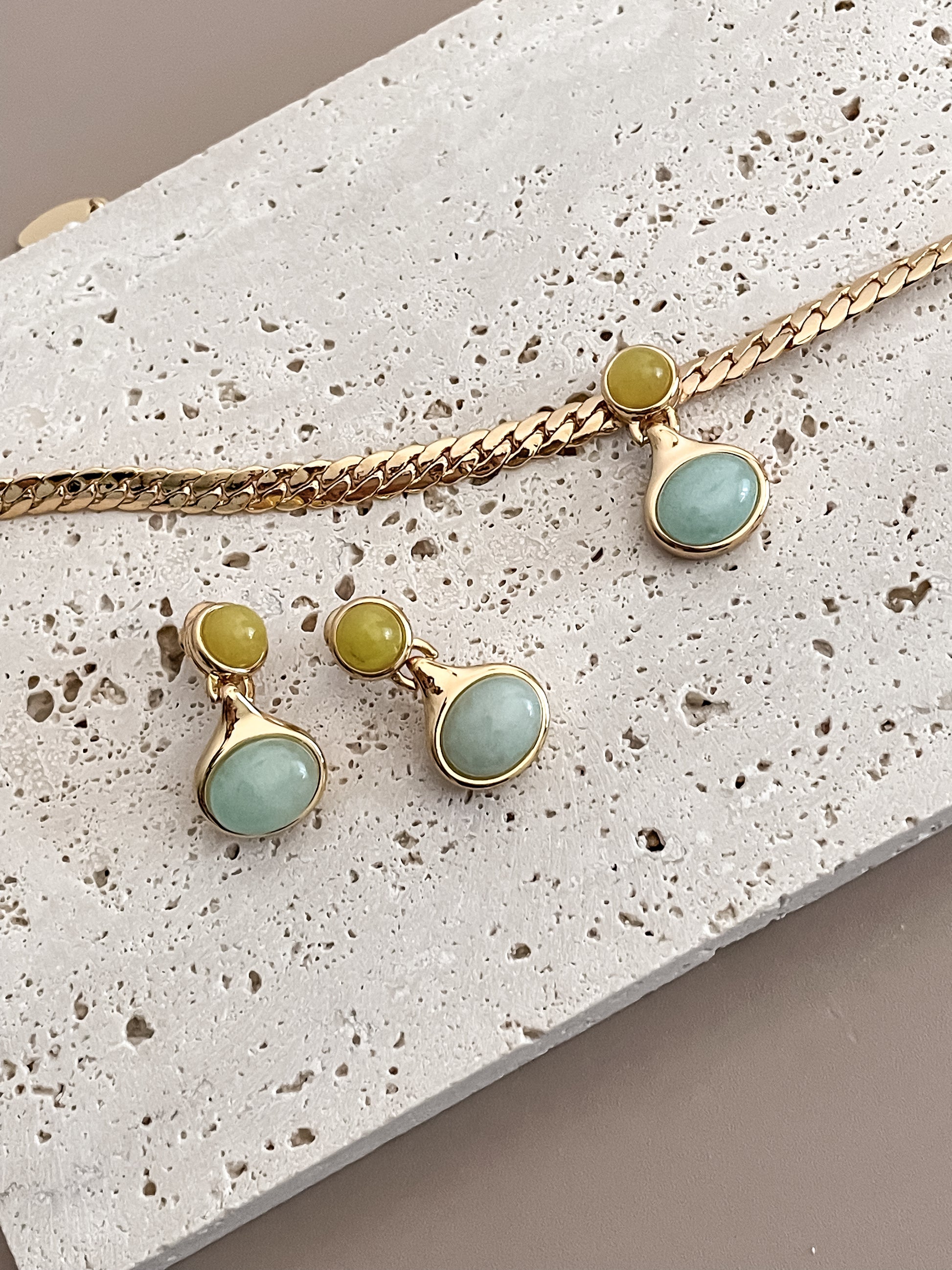 These exquisite earrings feature genuine natural Aventurine gemstones, known for their soothing and balancing properties, adding a touch of tranquility to your look. Meticulously crafted with high-quality materials, these earrings boast a French Retro design that embodies sophistication and grace. The studs are thoughtfully made of S925 silver, ensuring both comfort and durability.