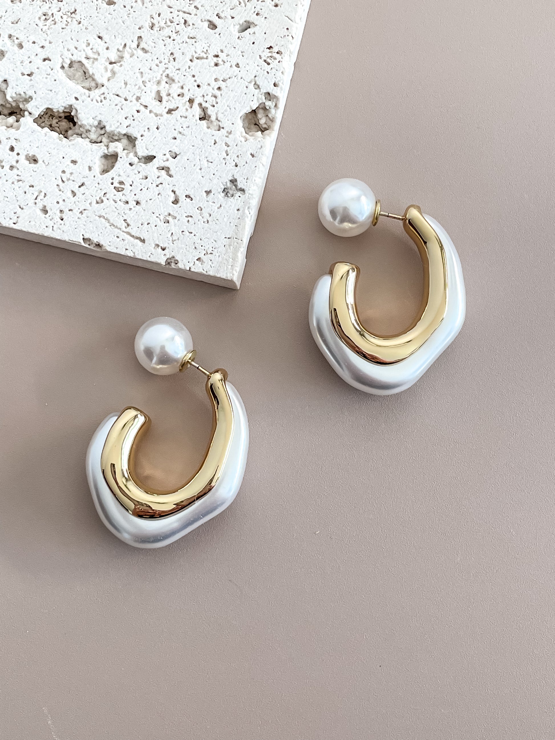 C-Shaped Pearl Earrings