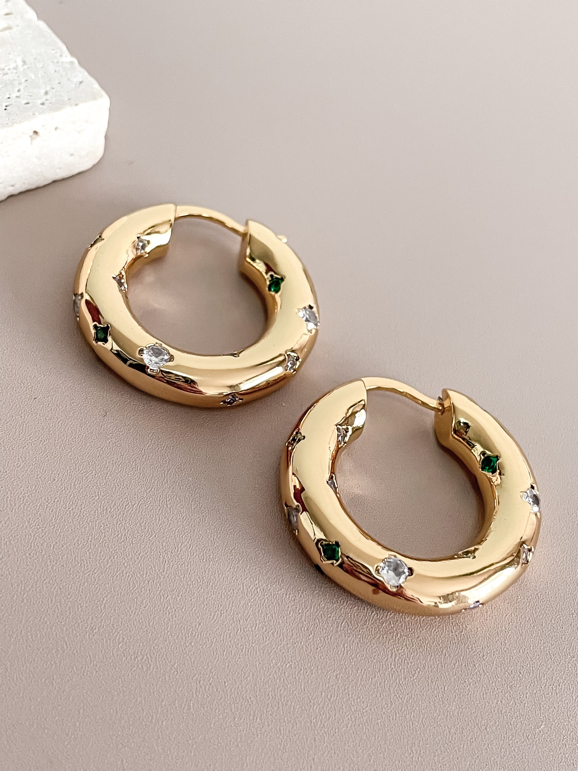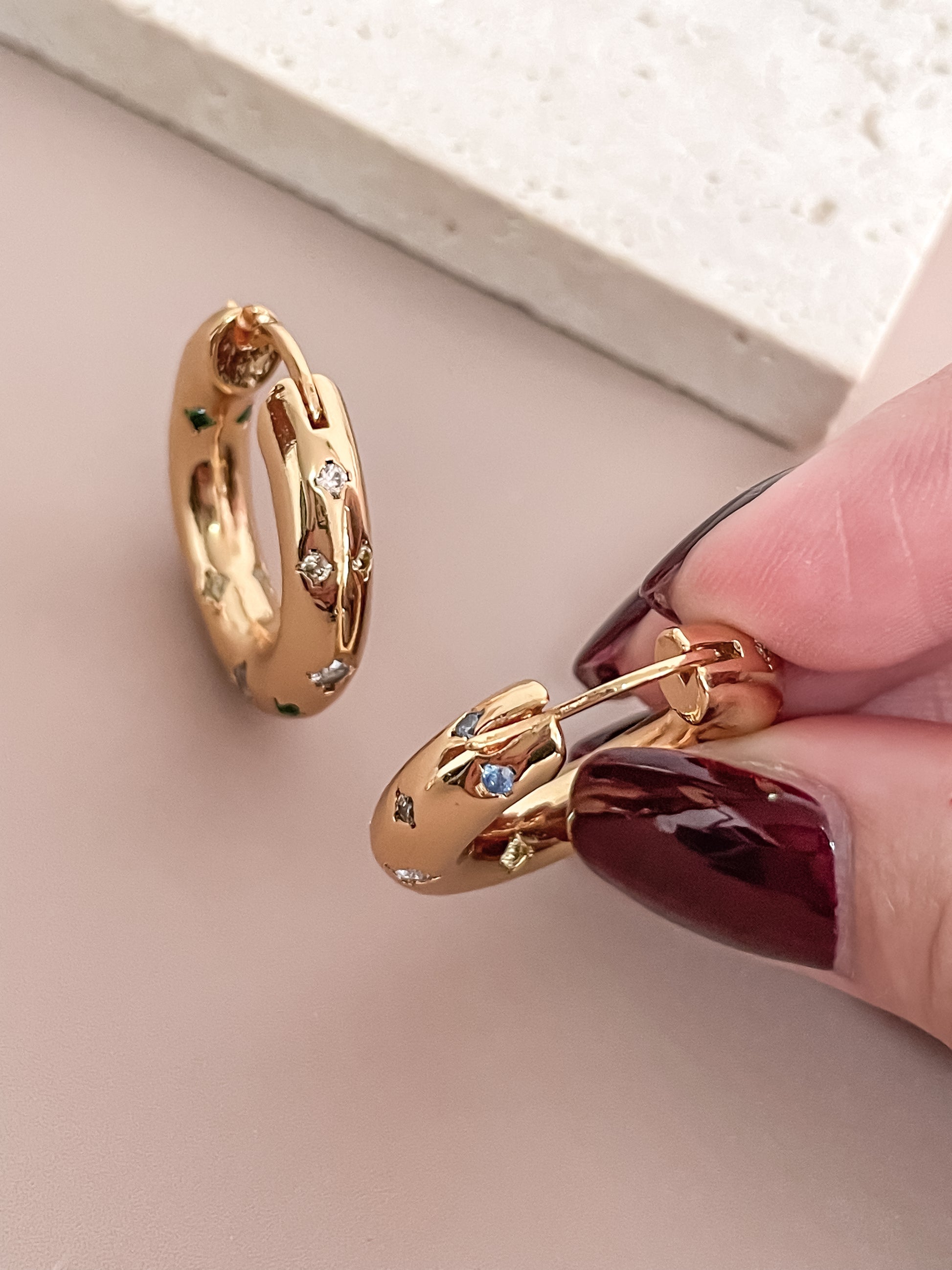 Colorful Zirconia Hoop Earrings 18K Gold Plated Zircon Star Latched Hoops
