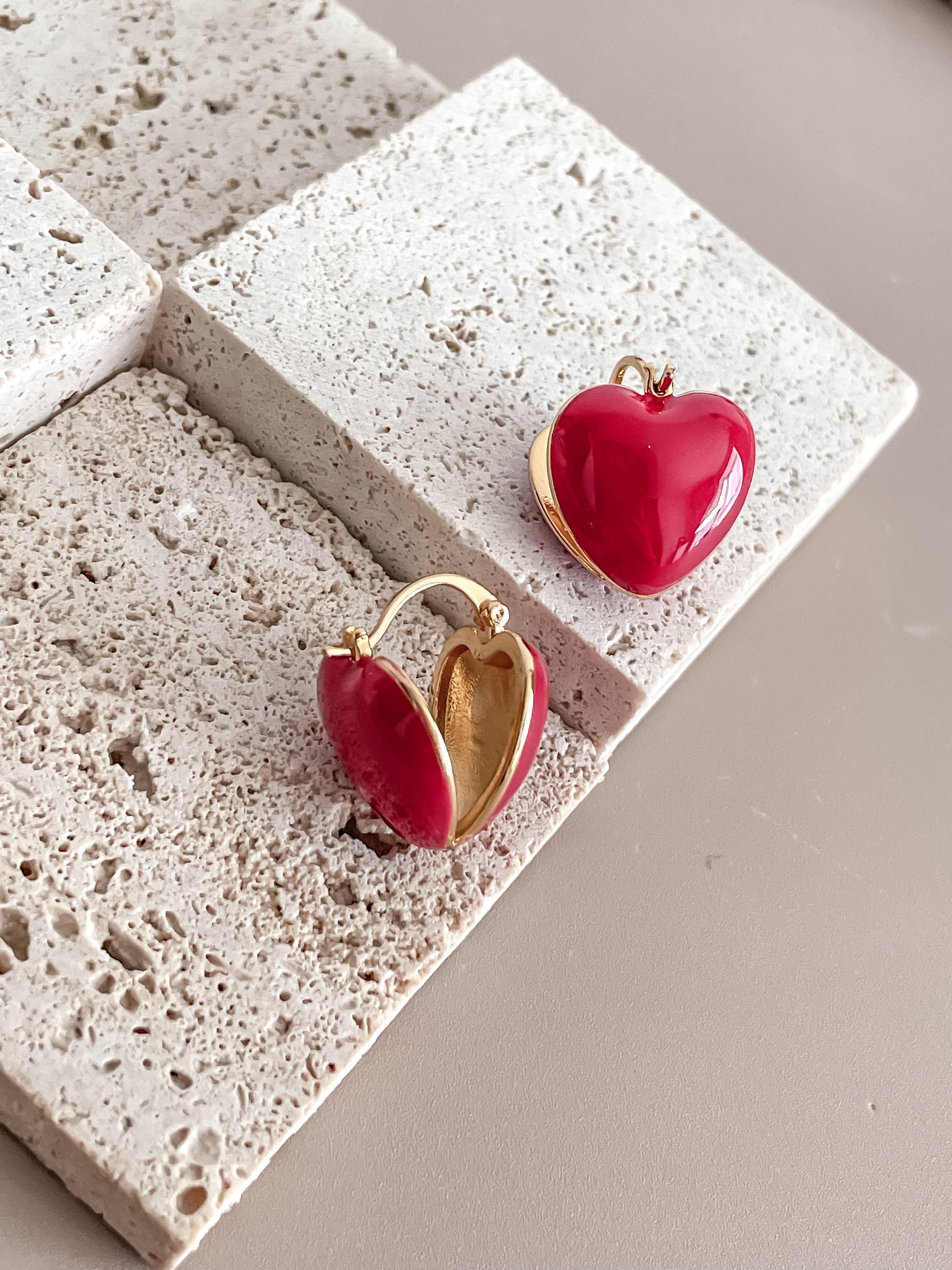 Enamel Glazed Heart Shaped Huggy Hoop Earrings