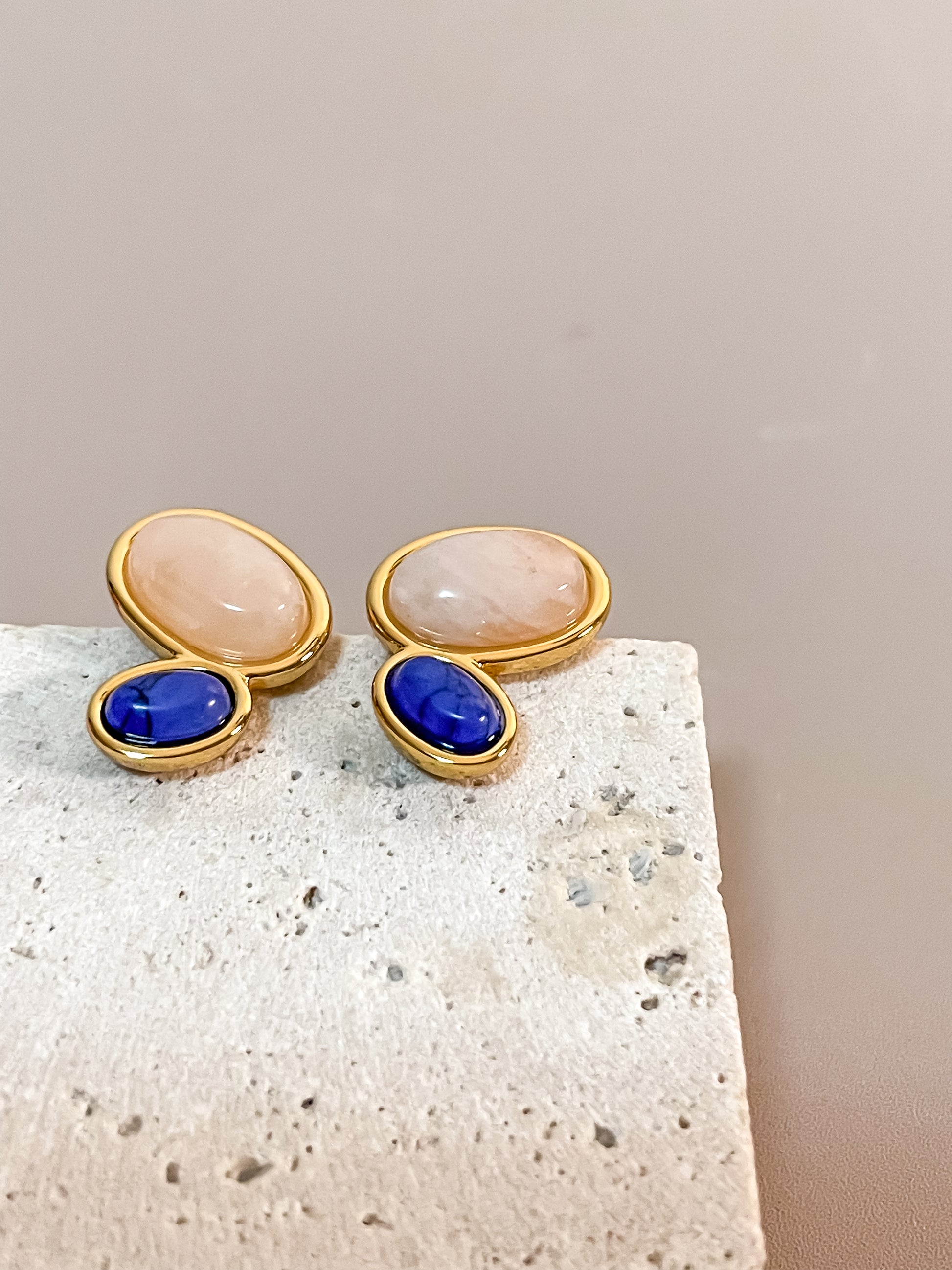French Retro Gemstone Stone Earrings