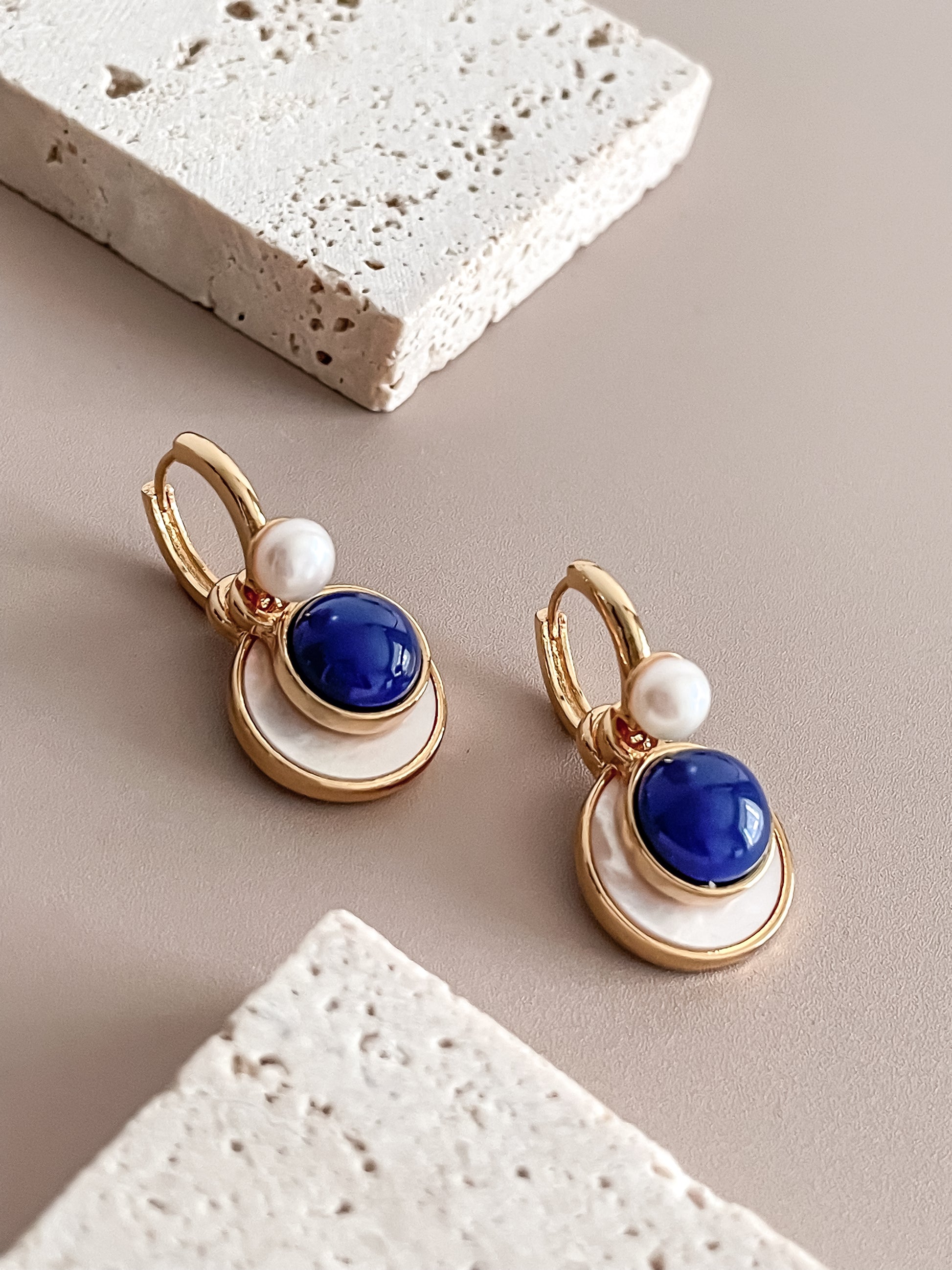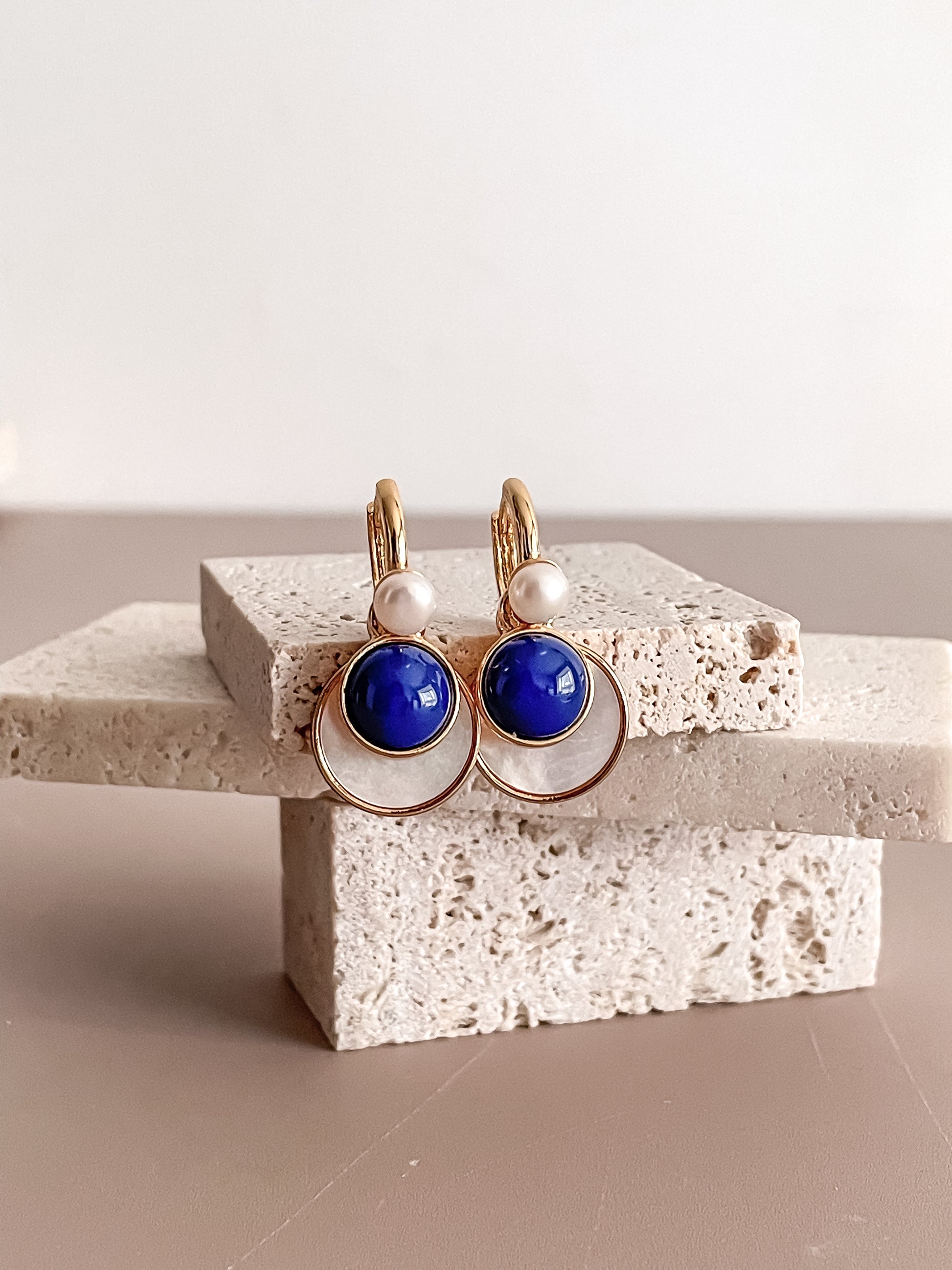 French Retro Gemstone Stone Earrings