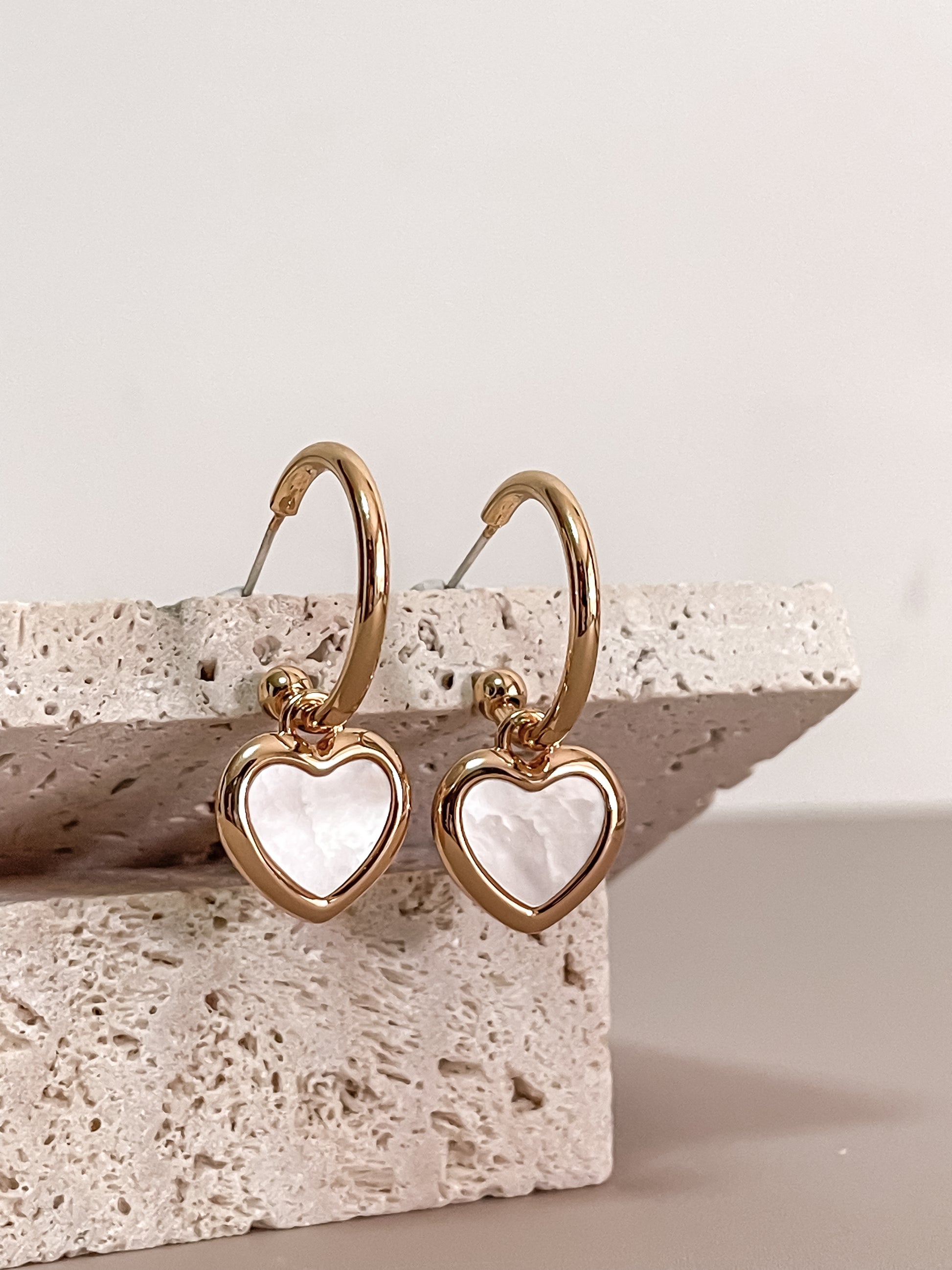 Mother of Pearl Heart C-shaped Hoop Earrings