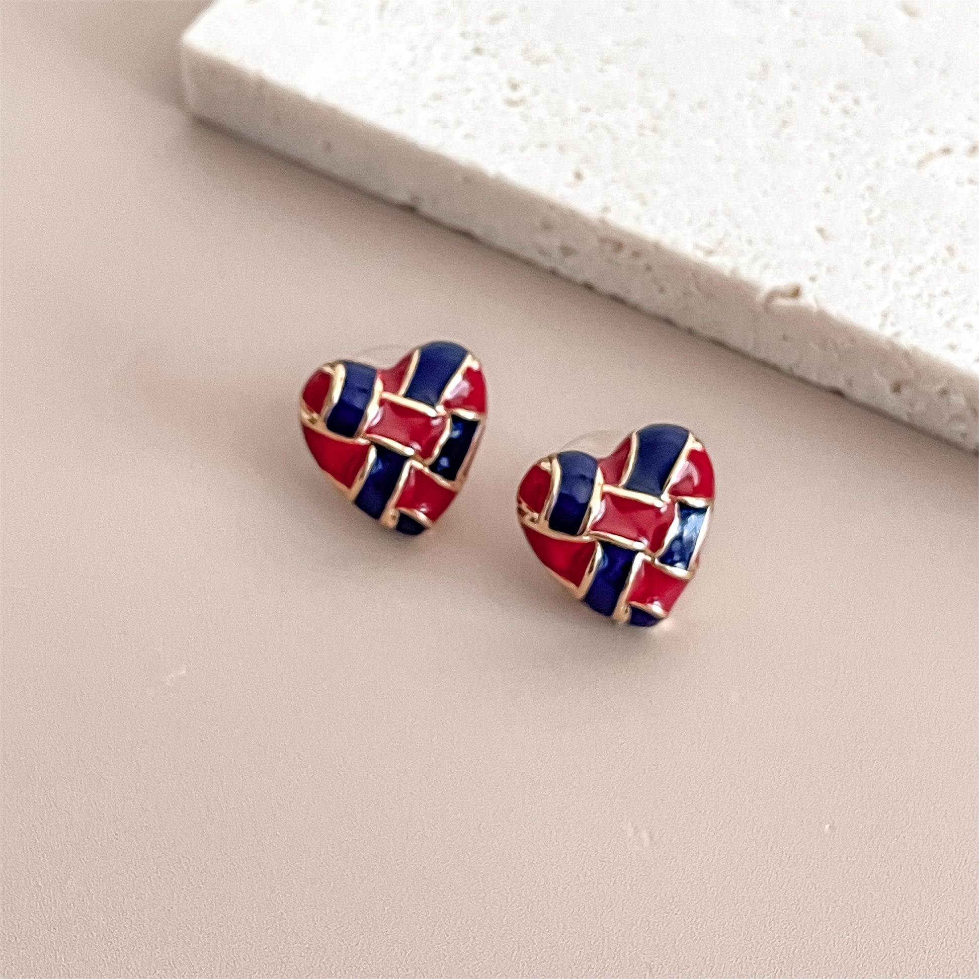 Red & Blue Woven Heart Earring