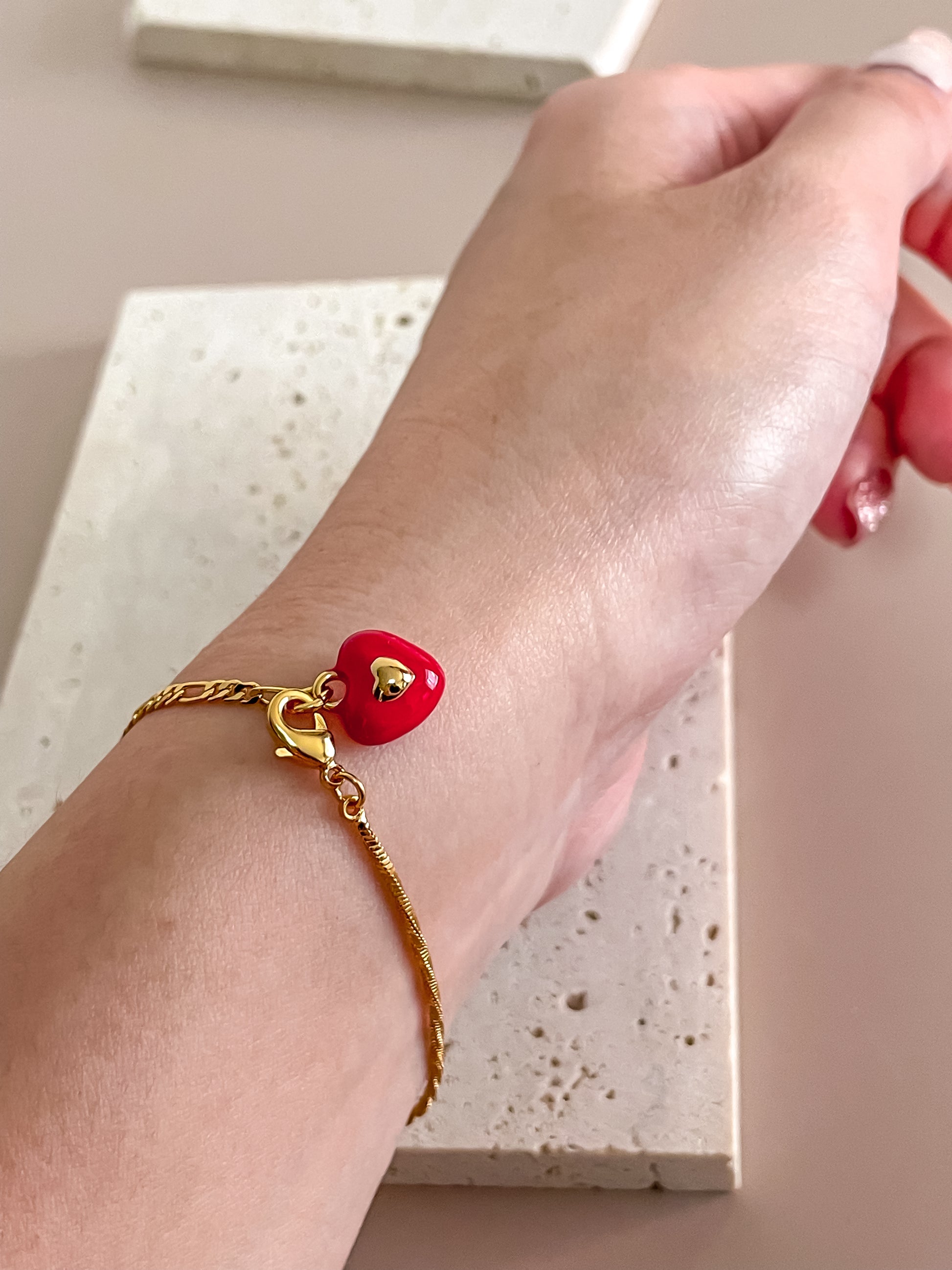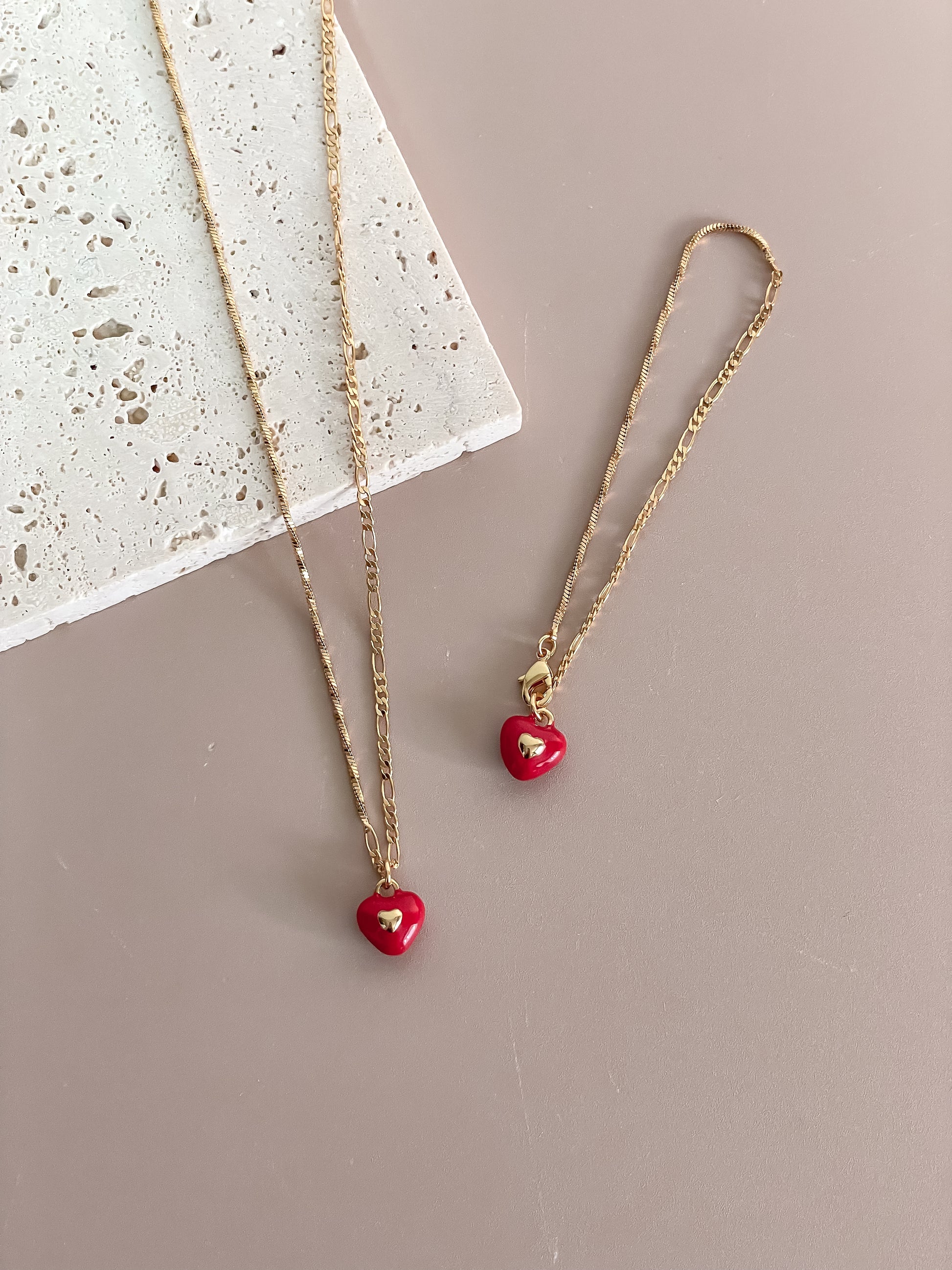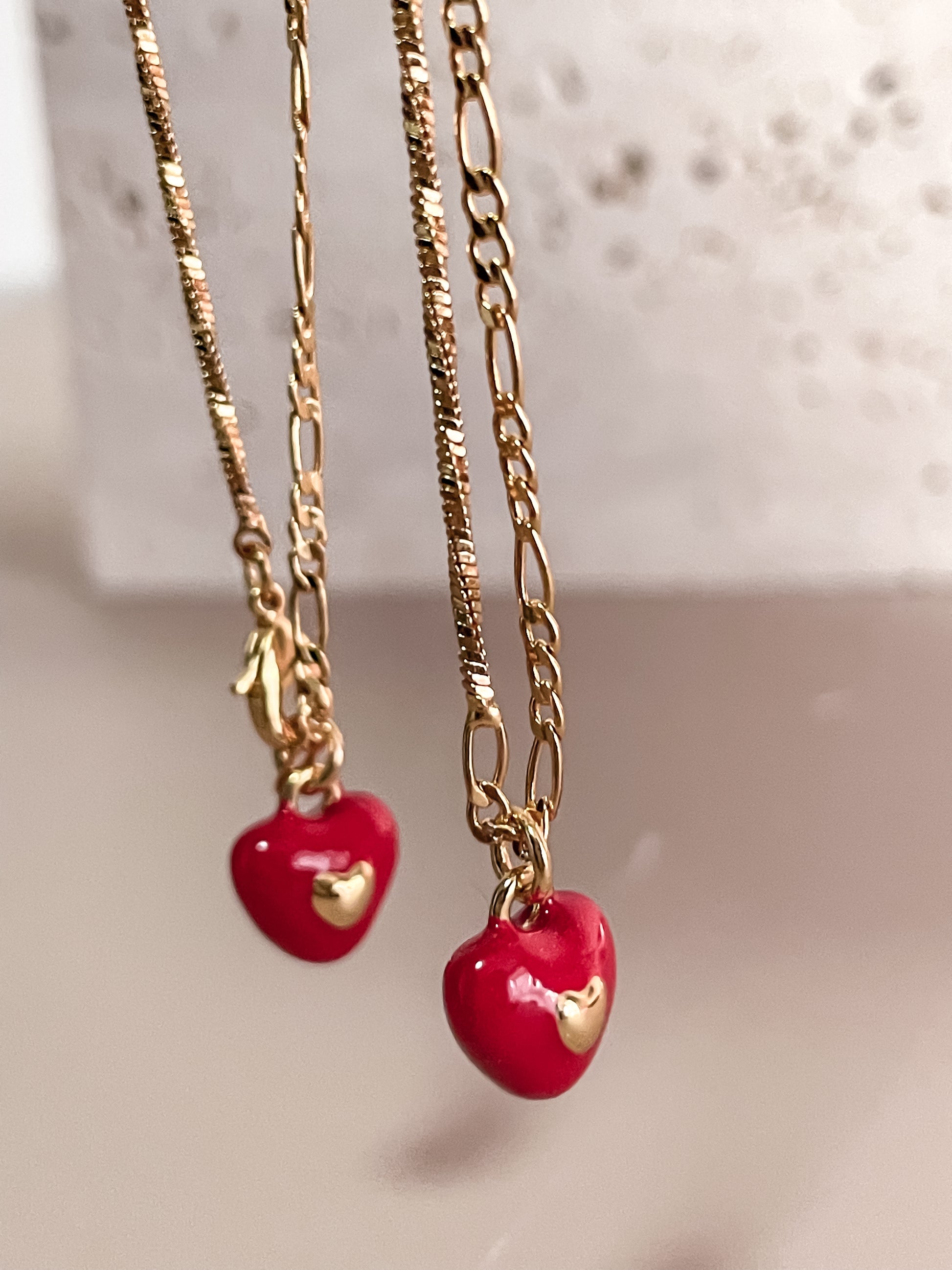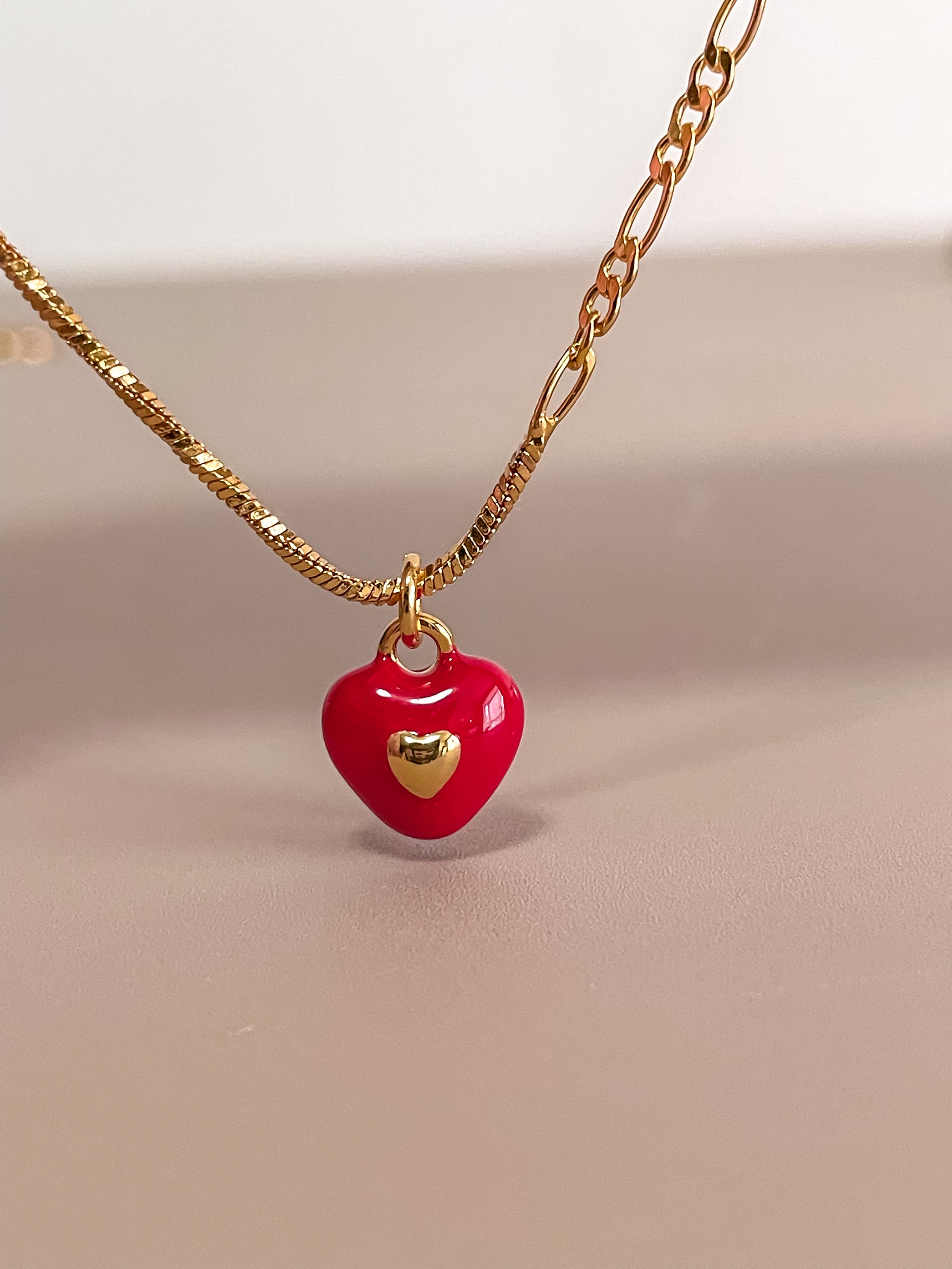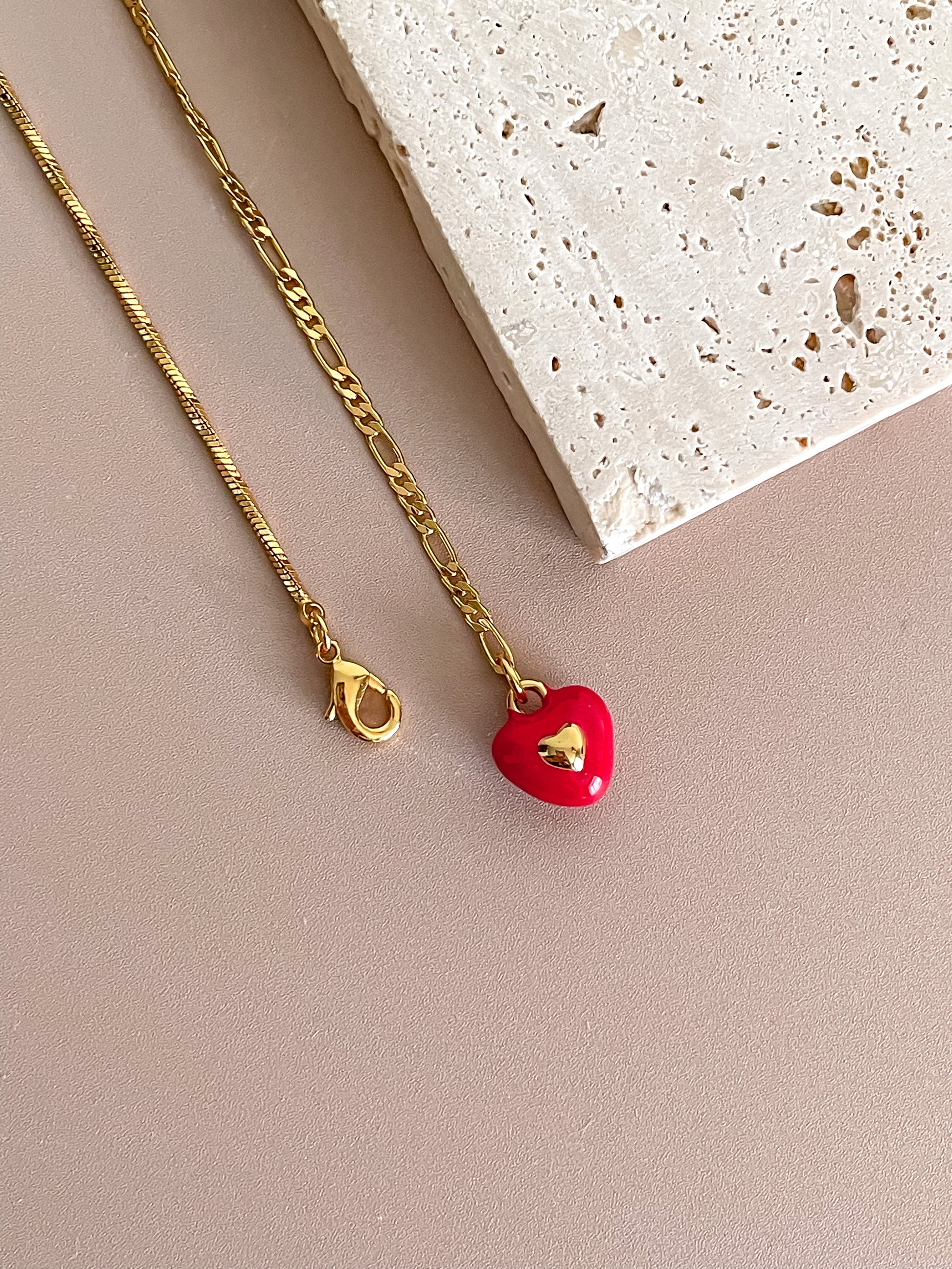 Crafted with intricate handiwork and attention to detail, this necklace features a mesmerizing red enamel heart charm suspended from a luxurious 18K gold-plated chain. The minimalist design adds an elegant modern twist, while the adjustable length allows you to find the perfect fit