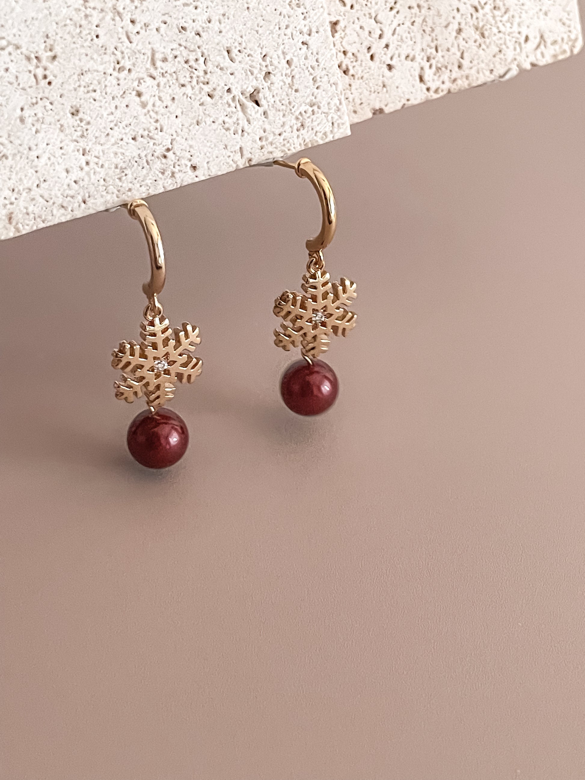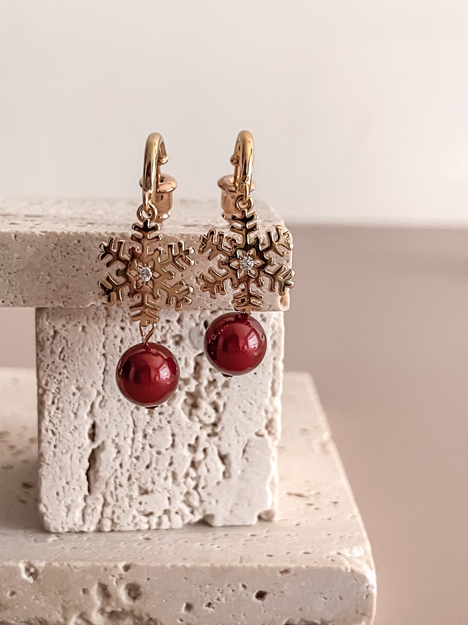 Snowflake Earrings w/ Red Zircon