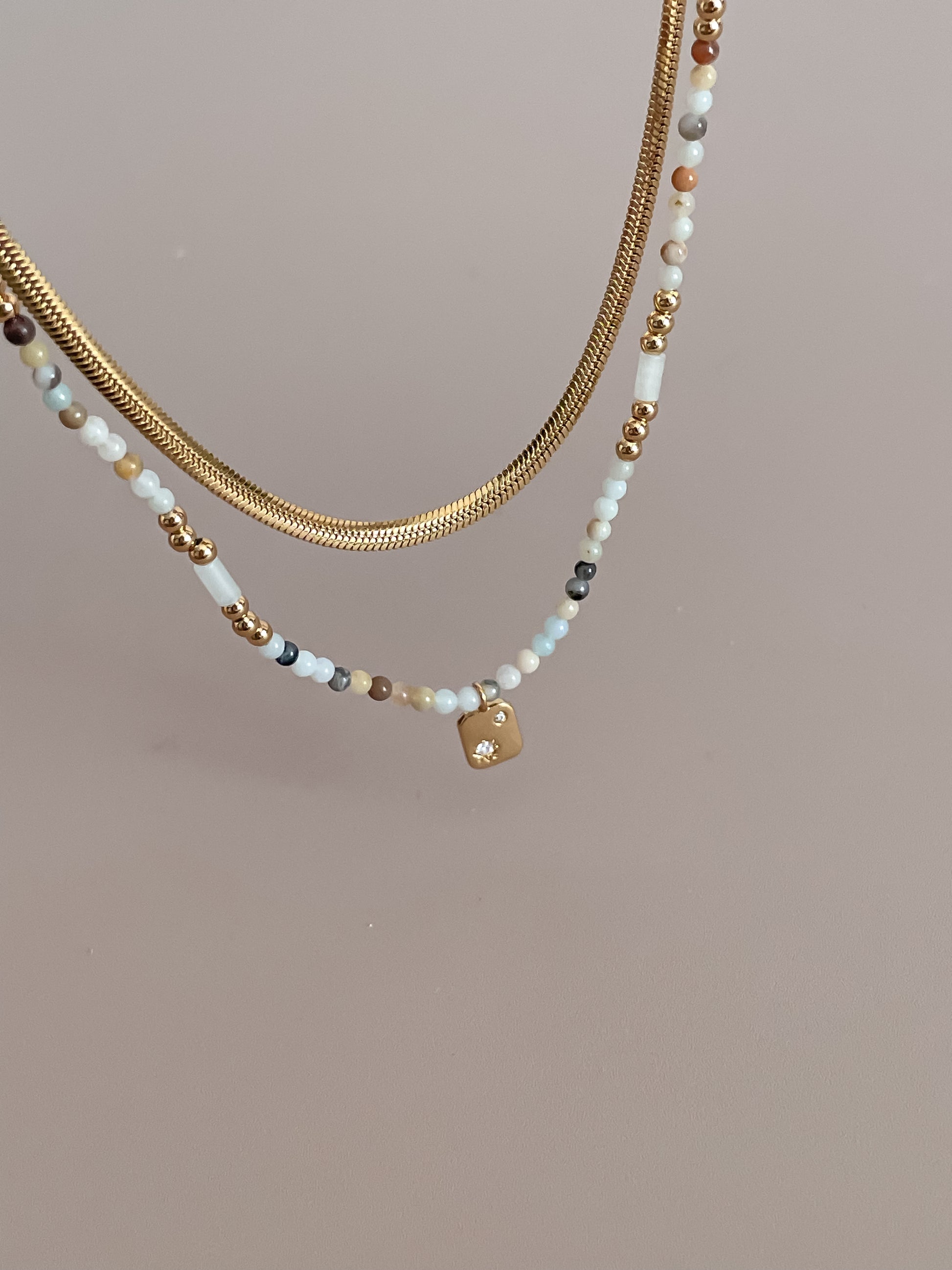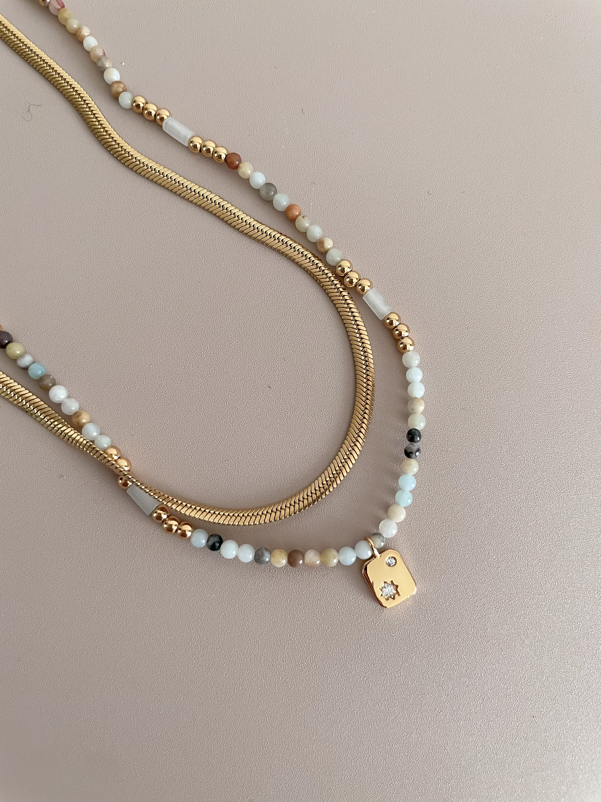 Zirconia Star Nugget Pendant Beaded Necklace